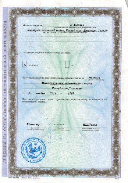 | Адрес местонахождения образовательной организации* | 367010, Республика Дагестан, Карабудахкентский район, с.Агачаул, ул.1-линия, д. №145 |